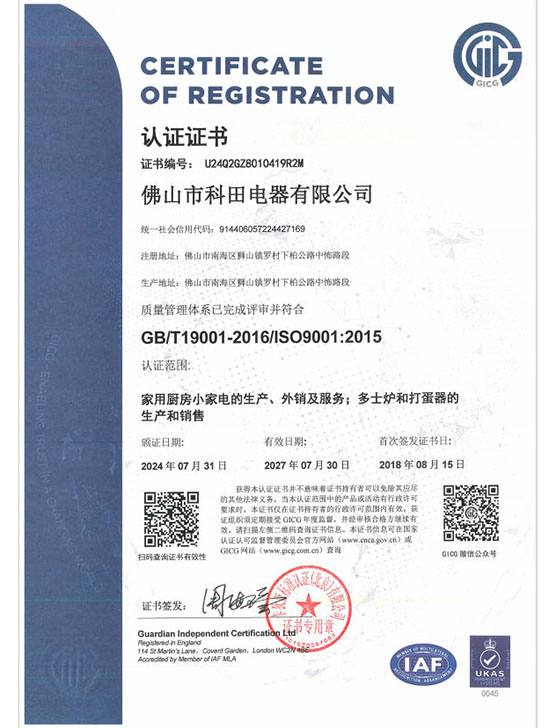 ISO9001证书